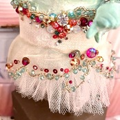 小さめのスワロフスキーやヴィンテージスパンコールで繊細な衣裳装飾になっています。